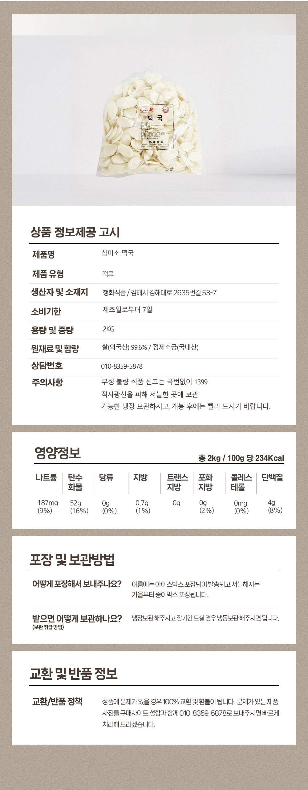 참미소 떡국떡 2kg 벌크 제품/ 떡국 / 외국산