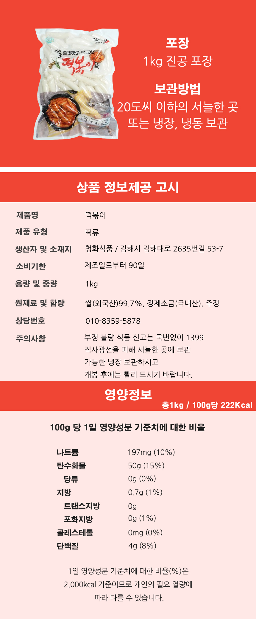 참미소 떡볶이떡 1kg / 쌀떡볶이 / 6cm *1.5cm